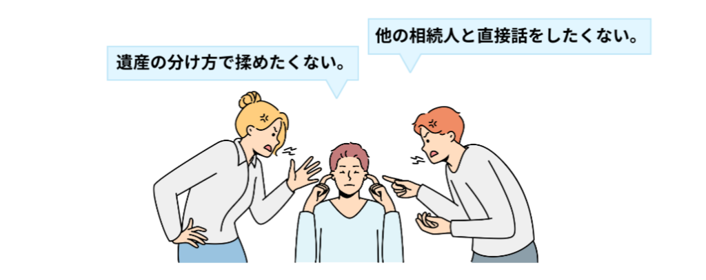 相続人それぞれから個別にお話を伺い、当事者同士で直接やり取りせずに合意を目指せます。