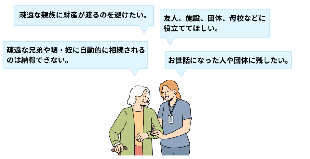 親族ではなく、友人・お世話になった施設・支援団体などへ財産を残すことも可能です。